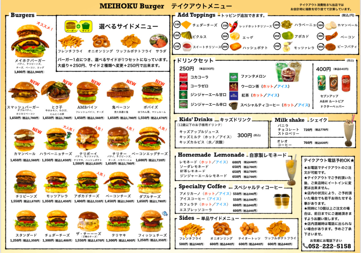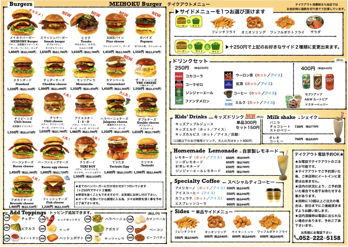 土日と平日夜のテイクアウトメニュー(グランドメニュー)